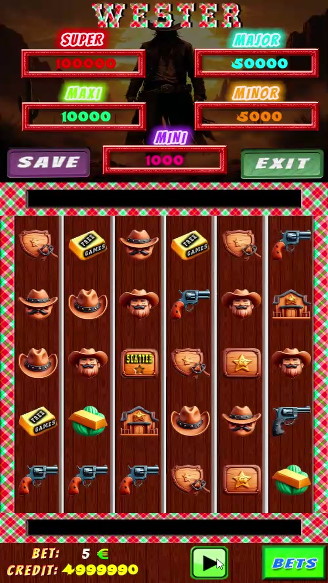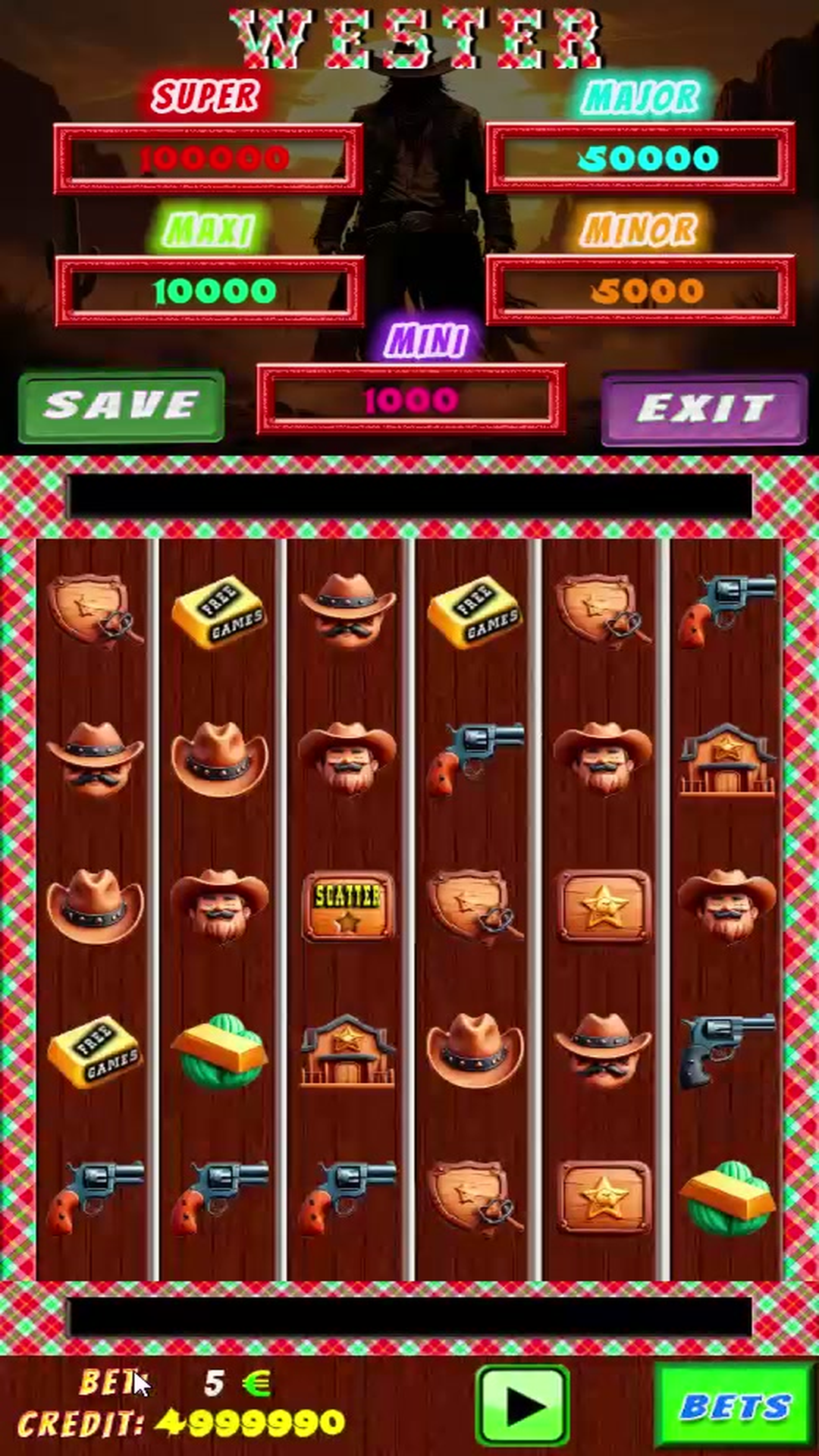- Premios a conseguir en el juego de Scatter (100.000, 50.000, 10.000, 5.000 & 1.000).
